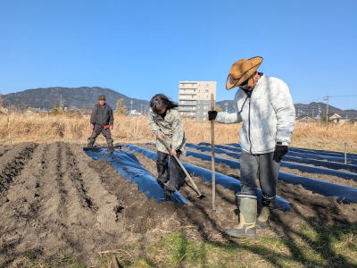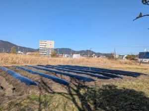 こんな荒地でも知恵を絞れば良い事業となりました。土を変えることができたらと思いますが、費用面からみて至難の業です。ところが、すごいことが起きました。2022年5月、蒲郡の土木業者に土の搬入をお願いしたところ快く無料で1日かけて、搬入してくれました。これで、石が邪魔をすることはありません。