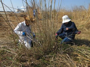 最初はポピー、矢車草などの花畑、その後蕎麦収穫、木植樹(桜、金柑、甘夏等)をしてきました。埋立地ですから、どんな土で埋め立てられているかは想像がつくでしょう。試行錯誤の末、石ころ交じりの痩せた土地であっても収穫できる「いも」に着目したのでした。