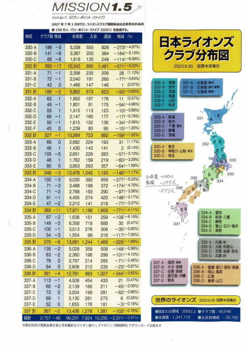 日本に於いては、経済構造の変化、高齢化や人口減少等により中小零細企業が 2015年より毎年6%強減少しています。そうした中、ライオンズクラブの国内会員数は1990年の16.8万人からほぼ半減しています。