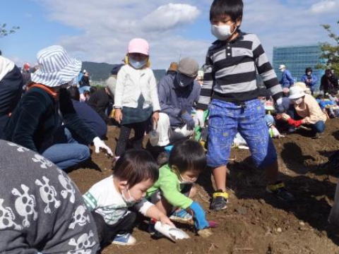 今年も、市内園児とそのご家族の方達に、家族団らんの一時を体験していただきます。さつまいも掘り、自分でアルミ包みしたさつまいもの屋外食事、そして、ペットボトルキャップアートの作成等、参加者に満足していただける様々な企画を準備しました。