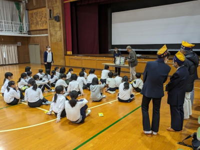12/5、蒲郡北部小学校6年生全員(約50名)参加されたライオンズ国際平和ポスターコンテストの北部小生徒のための表彰式を、北部小体育館で、市長、草野ZCをお招きし開催しました。毎年受賞者の笑顔がすばらしい。今年は、最優秀者からのお礼の言葉があり表彰式の価値を高めました。学道に励むきっかけになることを祈念しつつ継続して行う予定です。