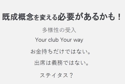❖【既成概念を変える必要があるかも! 多様性の受入、Your club Your way、お金持ちだけではない、出席は義務ではない、ステイタス?】