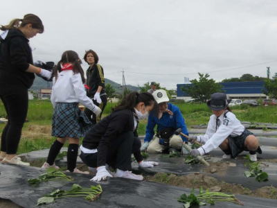 5月12日にガールスカウトといも苗を植えました。今年の苗は茎?が太く、今までとは全然違います。きっと大きなお芋になるのではないでしょうか。昨年は、根付かず80本ほど追加しました。