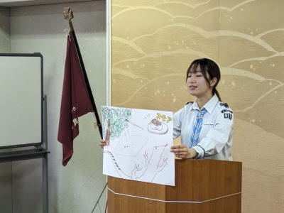5月19日ガールスカウトの総会に出席してきました。来賓は、蒲郡市長、衆議院議員、愛知県会議員、そして、マリンの4人でした。マリンも挨拶できました。この一年間マリンロード整備、エコキャップアートの作成、献血運動、赤い羽根募金運動、能登半島地震義捐金募金運動、養老孟司講演会及び虫捕り会と多くのアクティビティに参加していただき感謝いたしますと伝えました。来年度もよろしくということで、新しいエコキャップアートの作成依頼をしました。GS会員5名の一年間で印象に残った活動の発表がありました。その内3人がマリンとの共同アクティビティ(いも堀大会、マリンロード整備、養老孟司講演会)についてで、嬉しく思いました。